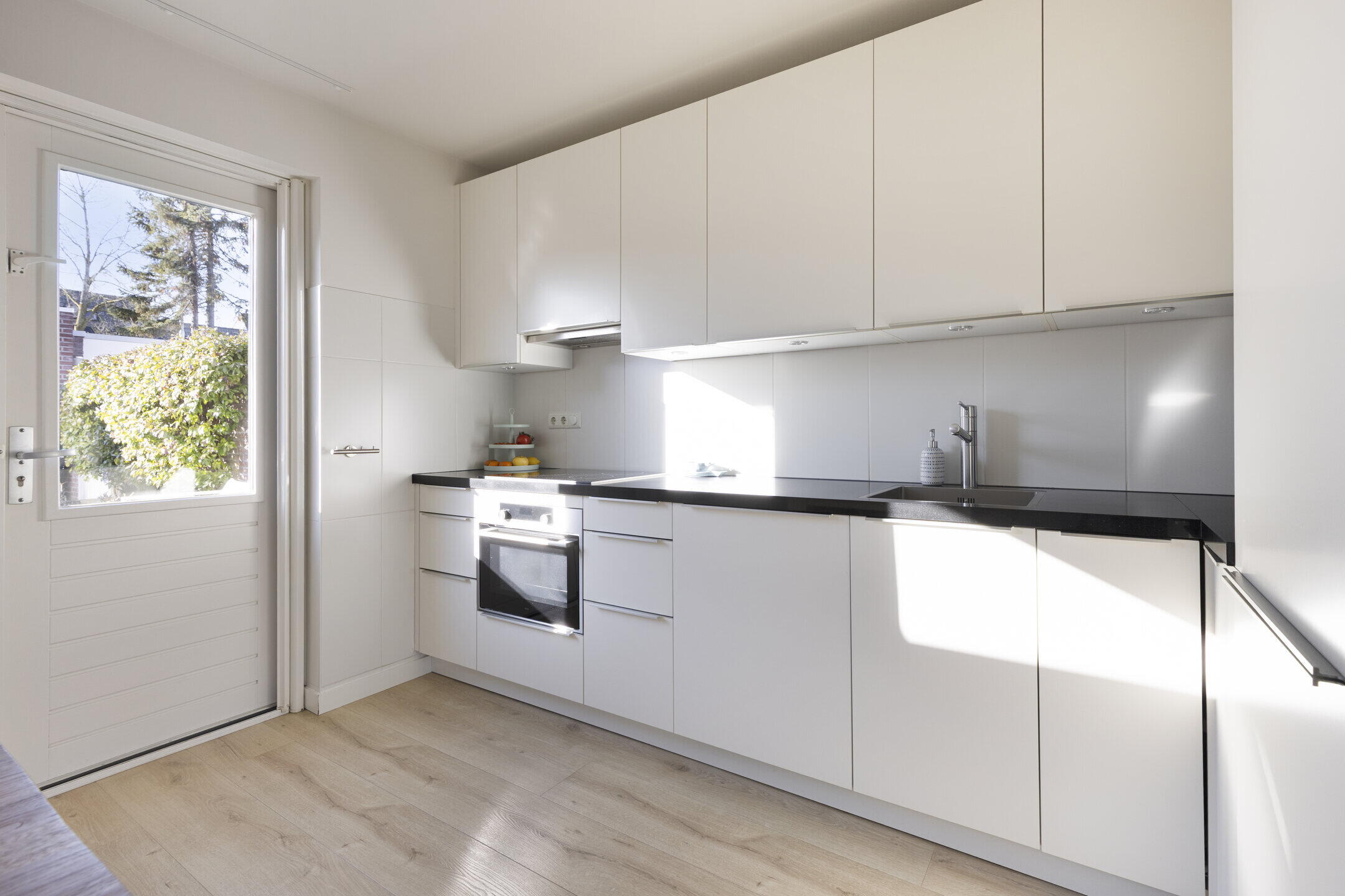 De open keuken vormt een gezellige verbinding met het zit- en eetgedeelte. Perfect voor lange avonden tafelen of koken terwijl de kinderen aan de eettafel huiswerk maken. De keuken is voorzien van inbouwapparatuur (welke in 2022 deels is vernieuwd), netjes onderhouden en heeft een deur naar de tuin, ideaal op zonnige dagen.
