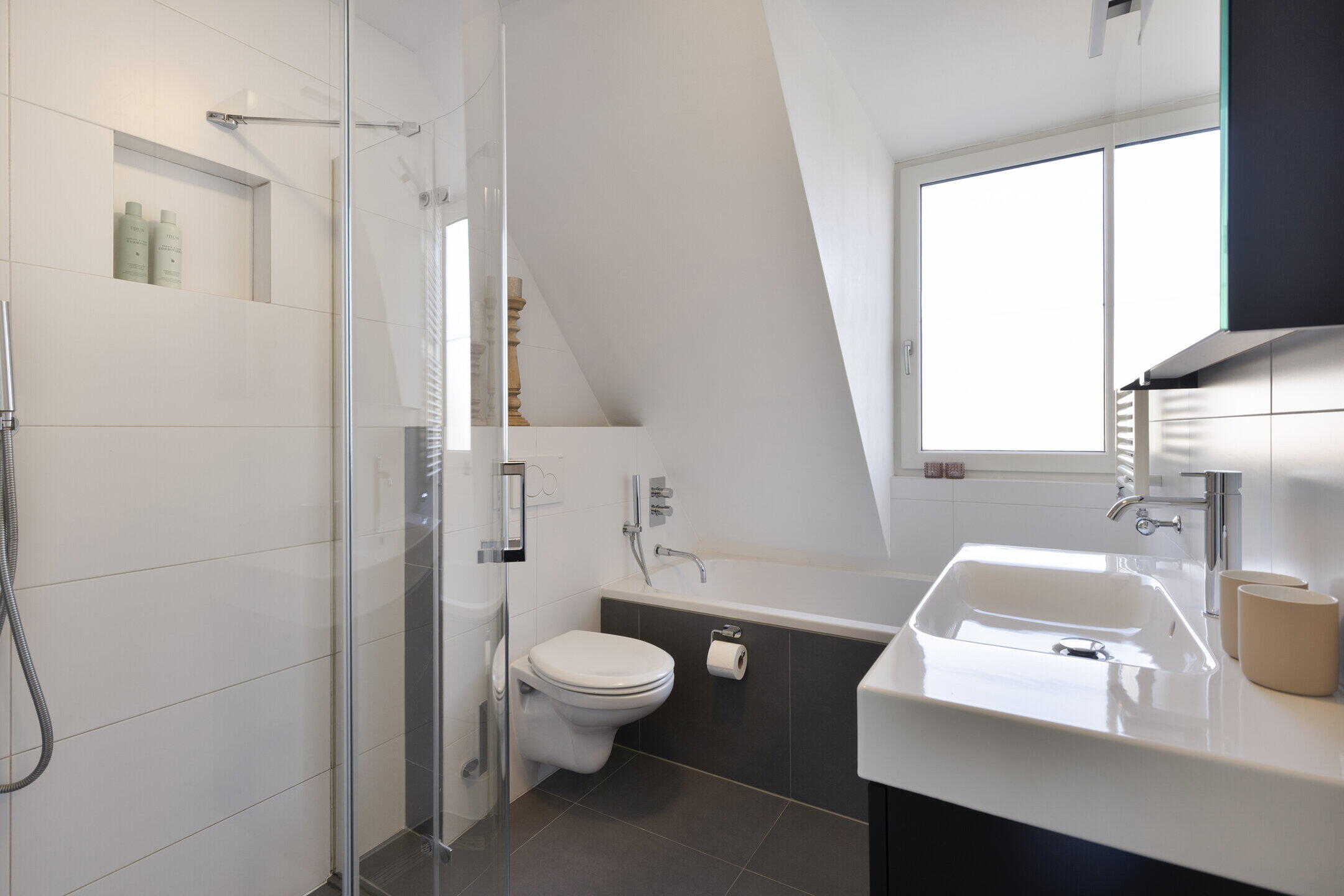 Op de verdieping bevinden zich drie lichte en ruime slaapkamers, allemaal netjes afgewerkt. De grote dakkapellen zorgen voor extra ruimte én veel daglicht, wat elke kamer een fijne, open sfeer geeft. Daarnaast zijn de ramen op de eerste verdieping aan voor en achterzijde volledig voorzien van rolluiken. De badkamer is volledig betegeld en heerlijk licht. Hier kom je echt tot rust dankzij het ligbad, de inloopdouche en het toilet. Alles wat je nodig hebt, stijlvol bij elkaar.