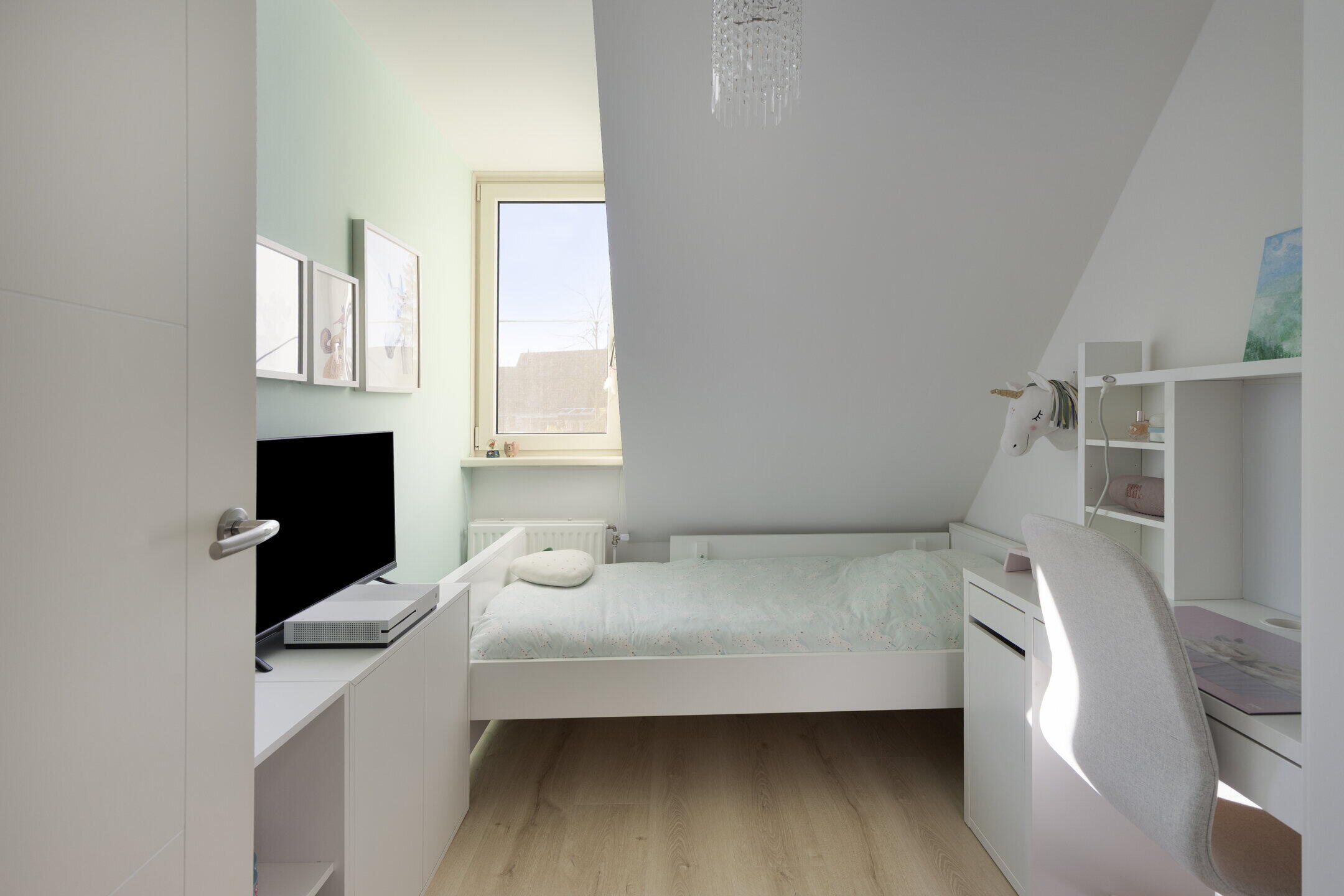De ruime zolderverdieping biedt veel daglicht en volop mogelijkheden. Denk aan een comfortabele thuiswerkplek, hobbyruimte of zelfs een vierde slaapkamer.