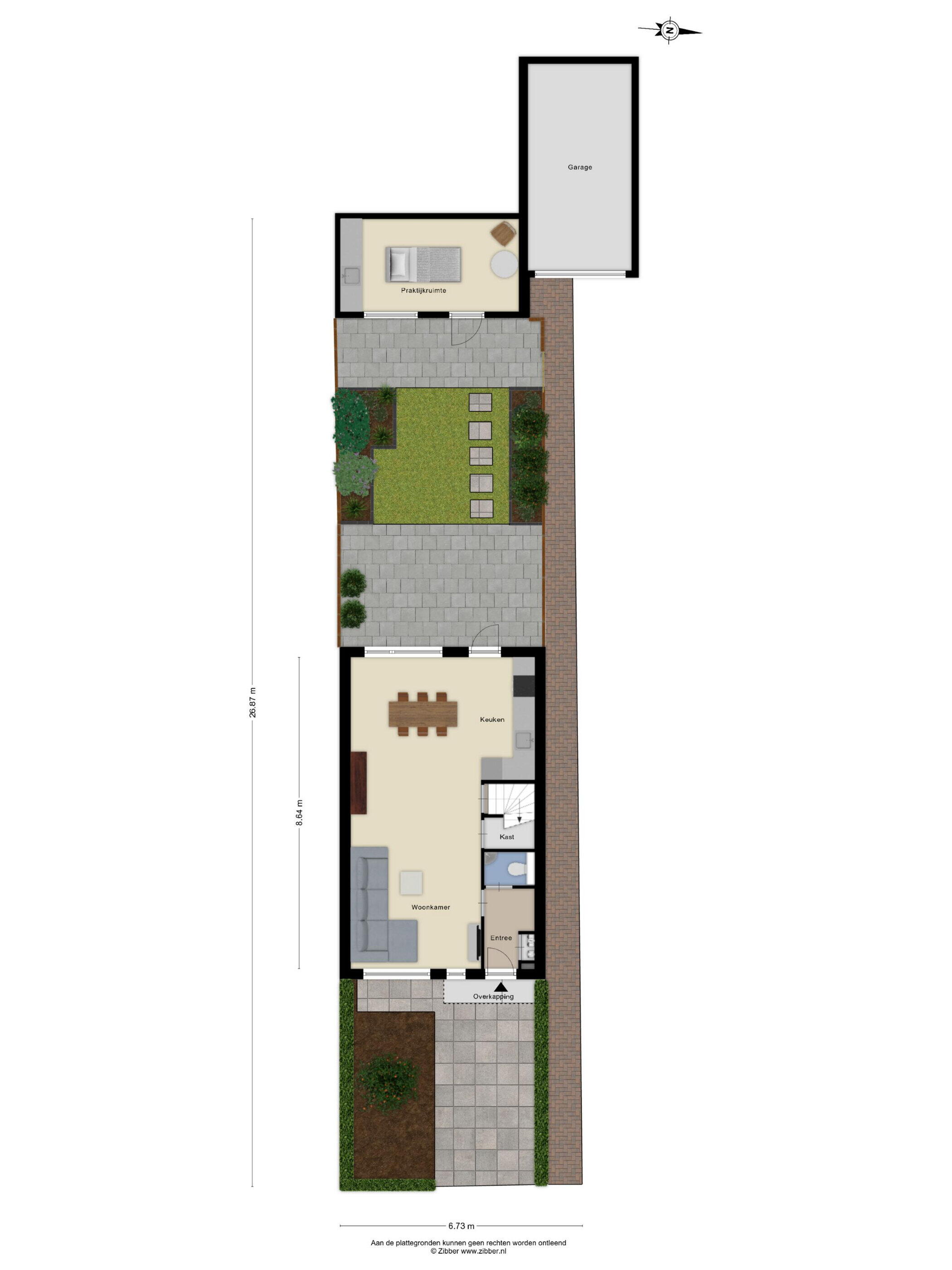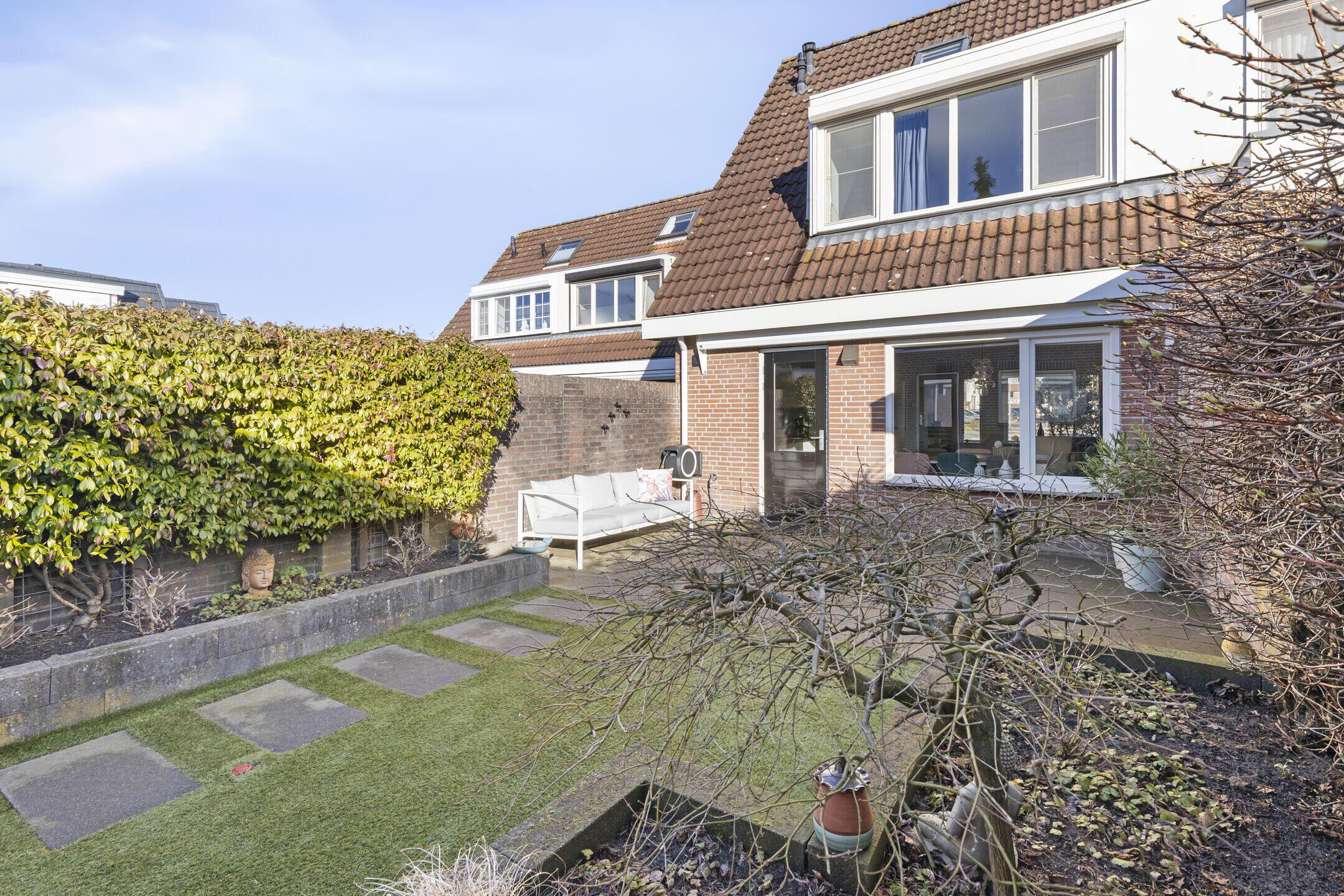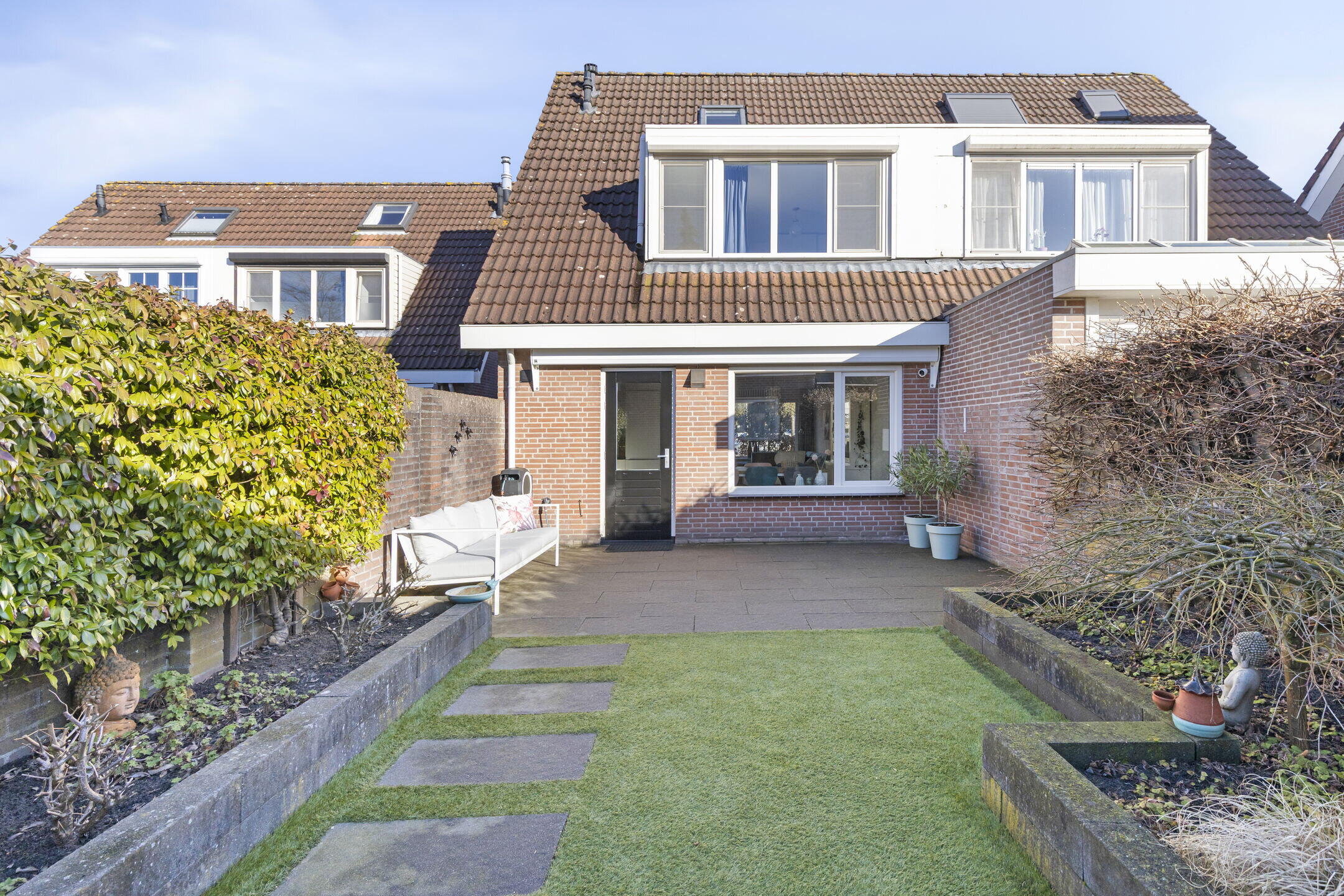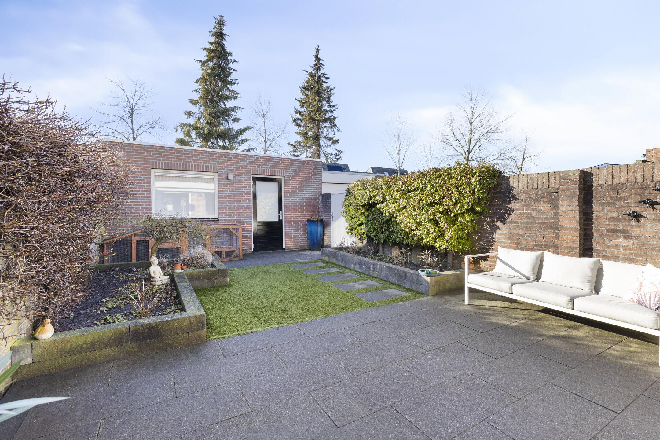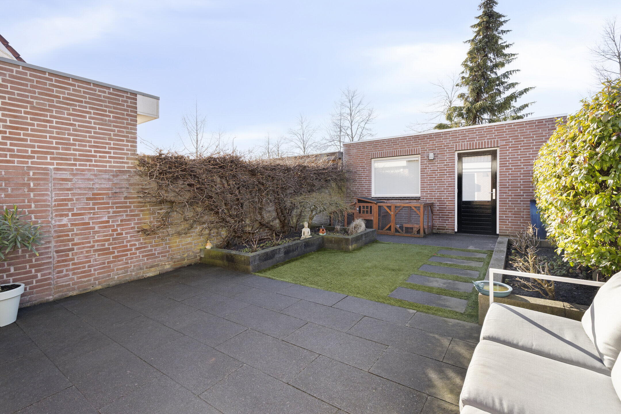 De fraai aangelegde achtertuin is netjes onderhouden en biedt een groot terras en een grasgedeelte. Hier geniet je van lange zomerdagen, barbecues met vrienden of spelende kinderen. Daarnaast beschikt de tuin over een elektrische zonnescherm zodat je in de zomer ook nog lekker kan genieten van de schaduw.