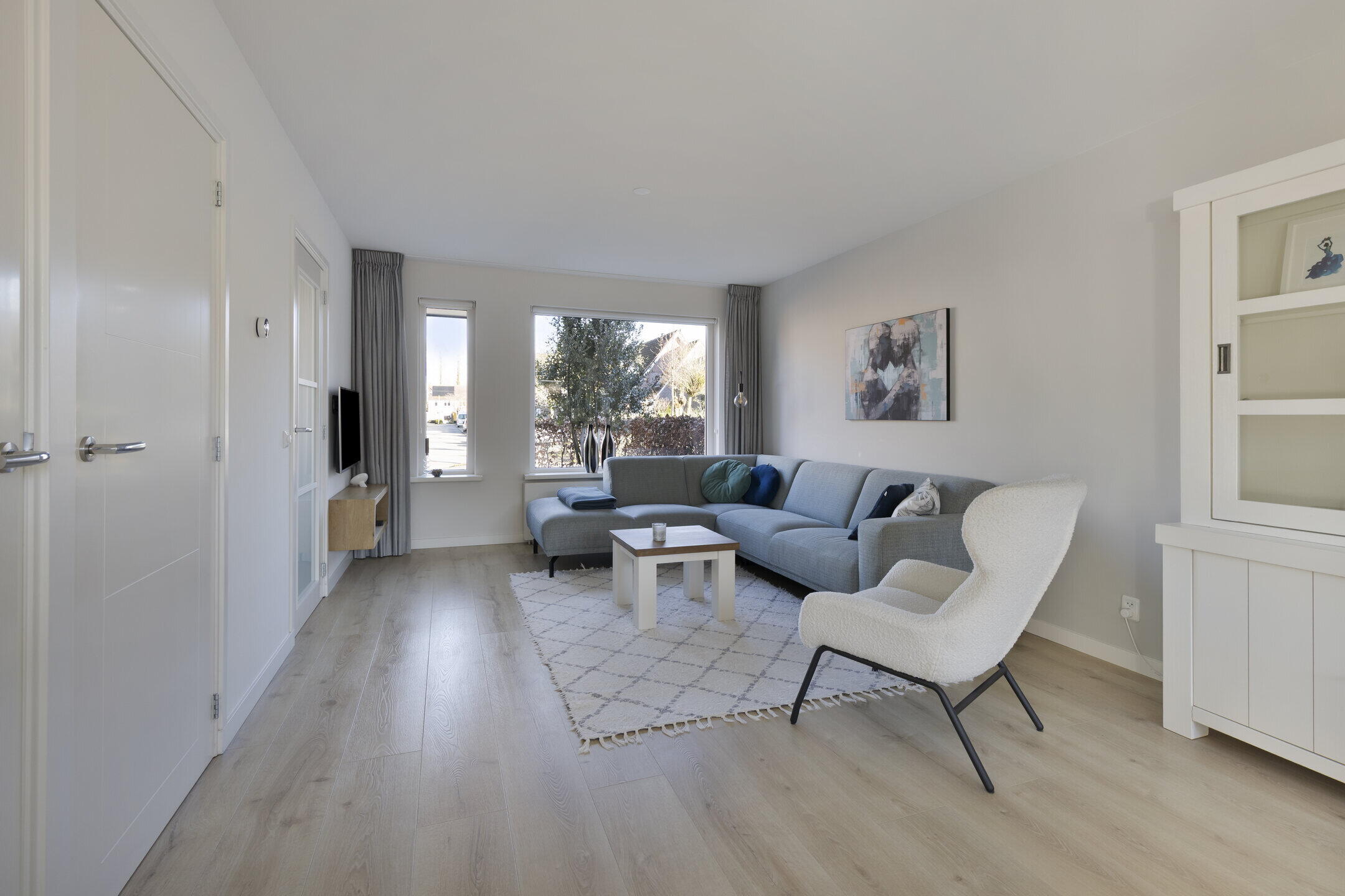 De woonkamer is een heerlijke, lichte leefruimte. Dankzij de grote raampartijen stroomt het daglicht rijkelijk naar binnen. Strakke wanden, een nette vloer en een verzorgde afwerking zorgen ervoor dat je hier zó je meubels kunt neerzetten, instapklaar dus!